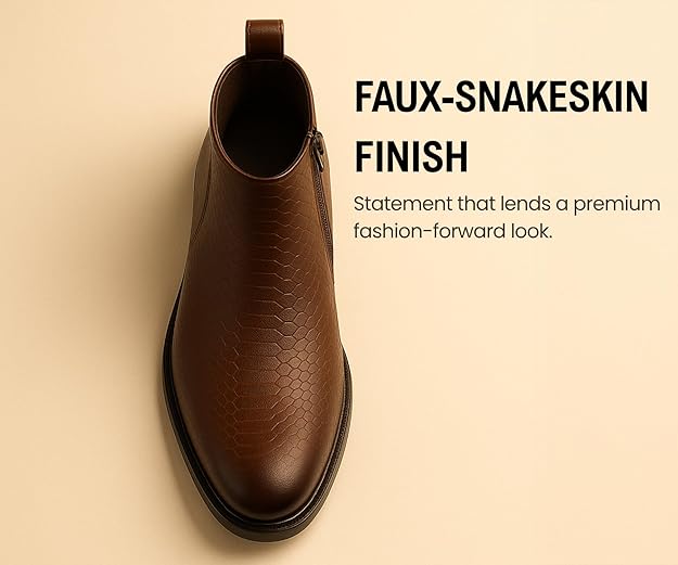 Stylish Mens Leather Boots – Vegan Chelsea design, cushioned comfort, durable faux leather. Perfect for office, parties, or casual wear.